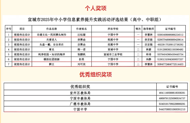 热烈祝贺我校在2025 年全市中小学信息素养提升实践活动评选中荣获多项奖项!